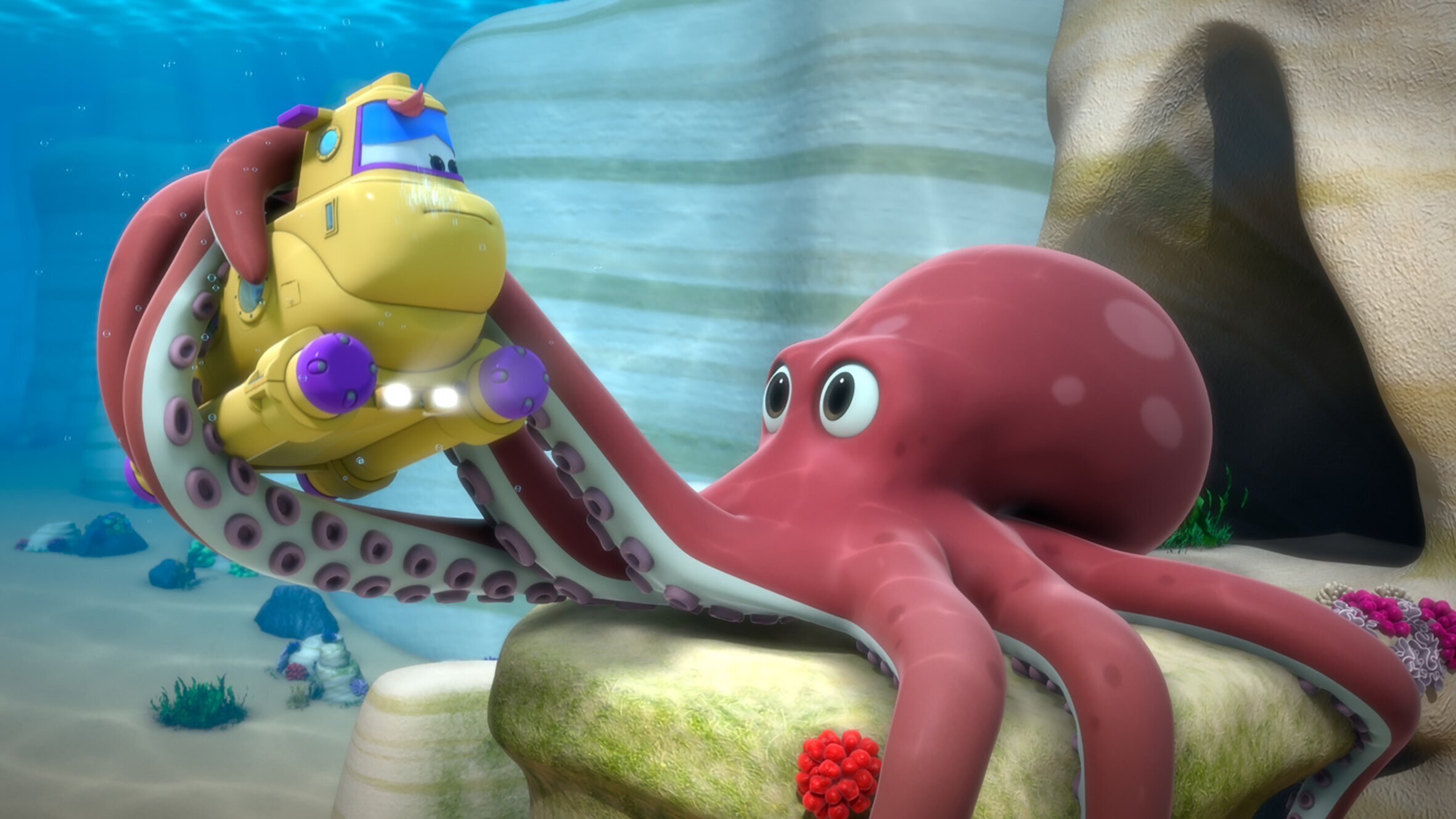 Auf der Suche nach Marek: Jett soll ein Paket an Marek in Prag liefern. Als er bei Marek klingelt, wird ihm jedoch von einer älteren Dame gesagt, dass Marek umgezogen ist. Leider kennt sie seine neue Adresse nicht. Jett beschließt, Marek auf dem Altstädter Ring zu suchen, und macht dort Bekanntschaft mit einigen Straßenkünstlern. Diese wollen ihm mit einer gemeinsamen Vorstellung helfen, möglichst viele Menschen anzulocken, um sie nach Marek zu fragen. Allerdings geht die Vorstellung gründlich schief und Jerome muss ihnen zu Hilfe eilen und zeigen, wie man gemeinsam auftritt. Freunde unter Wasser: Ayesha, die auf einer Insel in den Malediven lebt, ist um ihren Fisch Herrn Fisch besorgt. Sie hat ein kleines Schloss für das Aquarium bestellt, in dem Herr Fisch wohnen kann. Als Jett das Paket liefert, scheint der Fisch zunächst guter Dinge zu sein, doch schon bald ist er wieder traurig. Jett hat eine Idee: Herr Fisch braucht Gesellschaft! So machen sich Jett, Ayesha und Herr Fisch im gelben U-Boot auf den Weg zum Korallenriff, um Freunde für Herrn Fisch zu finden. Unterwegs werden sie von einem riesigen Oktopus in die Tentakel genommen, aus denen sie sich nicht allein befreien können. Erst als Roger der U-Bootbesatzung das Tauchflugzeug Mira zu Hilfe schickt, scheint sich alles zum Besseren zu wenden.
