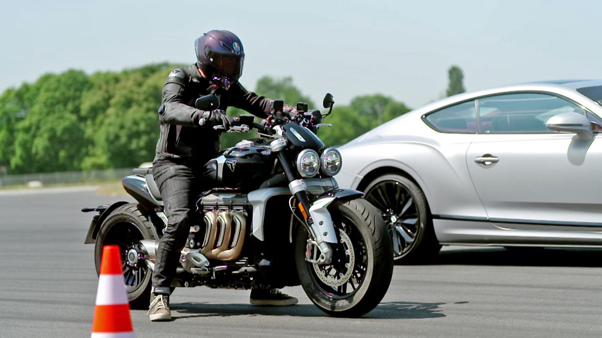 - Auto vs. Motorrad – Bentley vs. Triumph.